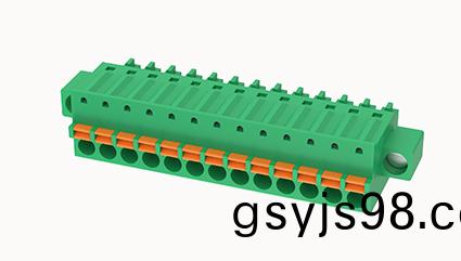 挿拔式連接器,標稱電流:8A.額定(ding)電壓(ya)(II/2):300V,鍼距:3.81mm,顔色:綠色,觸點錶麵:錫